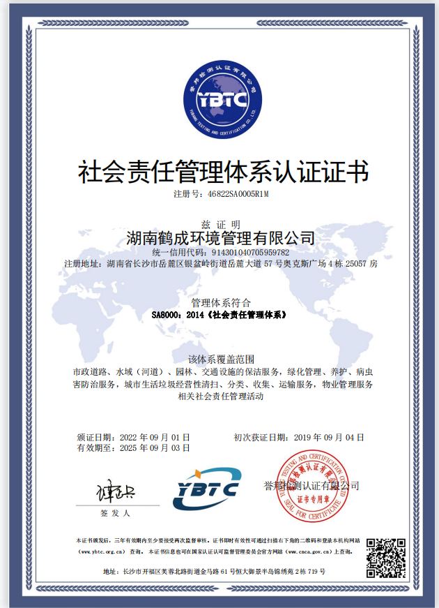 湖南鹤成环境理有限公司,成立2013q?月,原名长沙鹤成景观实业发展有限公司Q经q近几年的飞速发?各方资金的引?加之各界C会力量的大力支?我司已发展成Z家实力雄厚的专业城乡环境化一体化q营商?br/>       目前公司总部自有办公面积500多^方米,座落在湖南省长沙市岳麓区奥克斯广场,现有员工3000余hQ其中管理h?26人,技术h?5人,公司配备行业优质的清z机械设备,现有多功能机扫R、大型洗扫R、自卸式垃圾清运车、高压清zR、高压水车、垃?qx)车、压~垃圾R、高温高压洗地机、新能源车、E查R{?00余辆。ؓ方便理公司环卫车辆、优化出行\Uѝ高效指导环卫工作,公司搭徏了鹤成环境智慧环卫管理云q_Q对我司车辆q行数字化、专业化、精l化理。公怸要经营市攉K路清z维护、物业清z维护、园林绿化工E服务、风景园林工E设计与施工、交通设施的清洗l护、城市生zd?攉q输、绿化管理等服务目?br/>